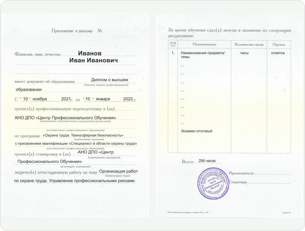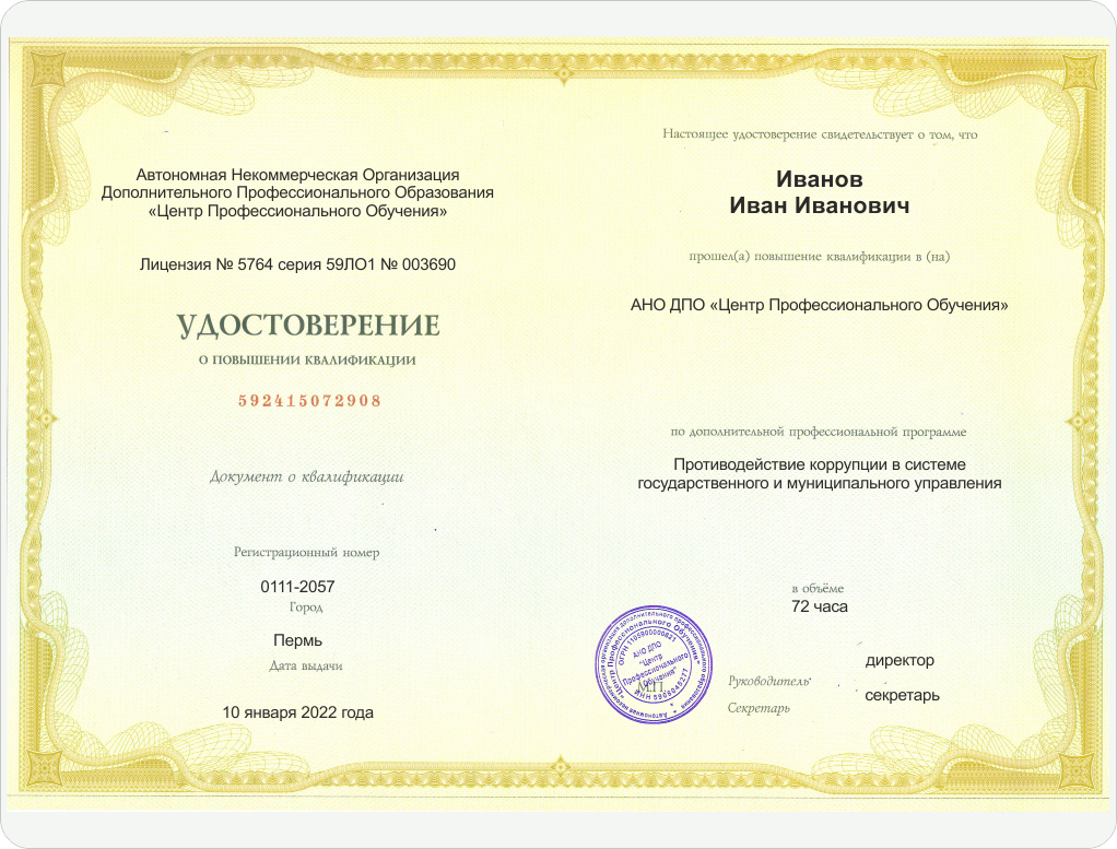 Лицензия на право обучения по программам повышения квалификации и профессиональной переподготовки.